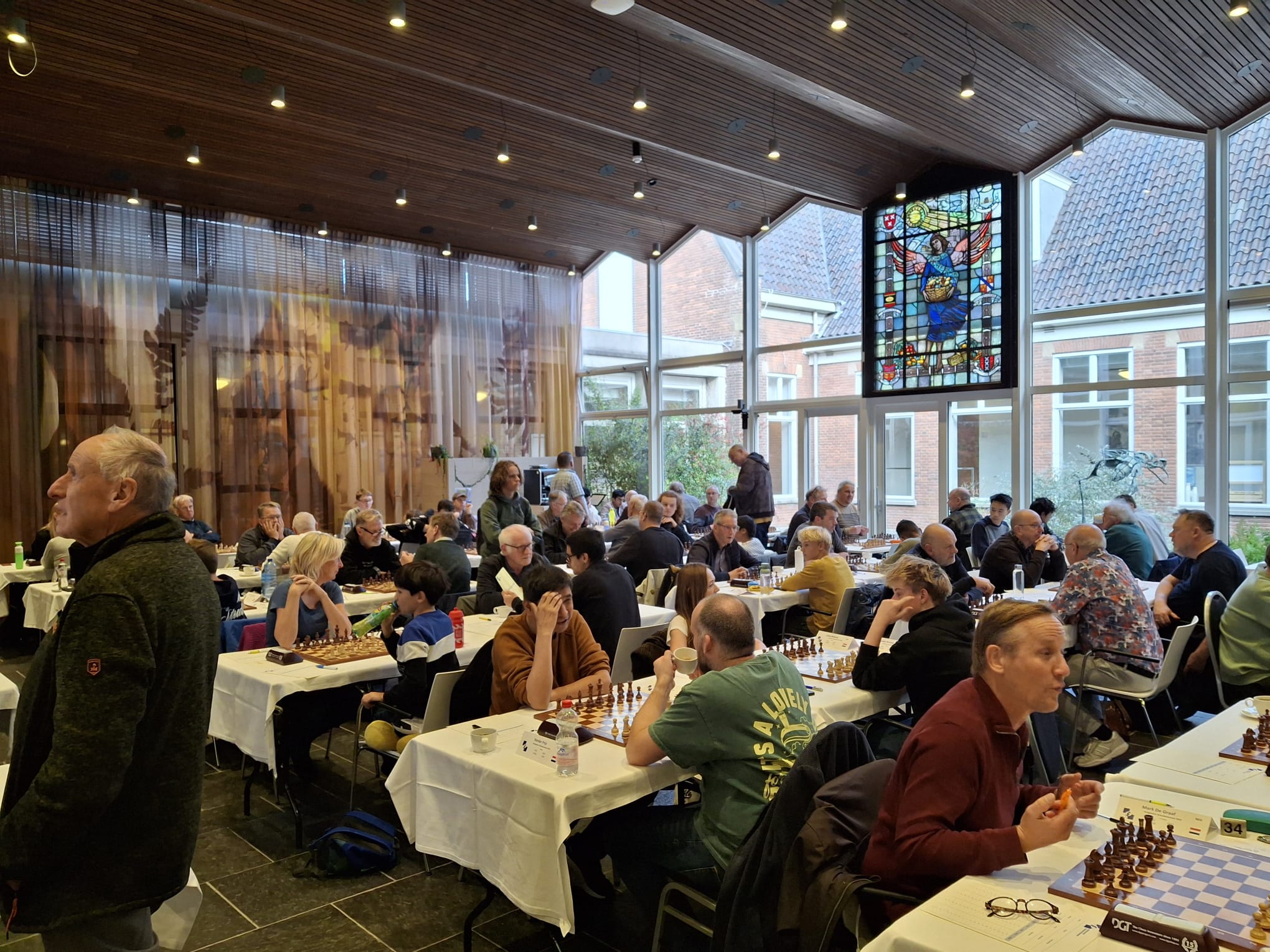 Acht dagen lang, van 18 tot en met 25 oktober 2025, waren alle ogen van de wereld gericht op Hoogeveen, waar het 28ste Hoogeveen Schaaktoernooi werd gehouden. Althans, zo hoorden wij in de uitzending van De Wild in de Middag op radio 2 van dinsdag 21 oktober. Zanger en schaker Nick Schilder mocht als expert een en ander duiden en tipte de honderdduizenden luisteraars van dj Ruud de Wild om vooral Grootmeester Thomas Beerdsen te bekijken. Toevallig was de eerstvolgende partij van Beerdsen de volgende ochtend tegen IM Migchiel de Jong uit Leeuwarden. Uiteraard vroegen wij ons af: zou ons aller Migchiel door een haag van NPO-fans zijn bord wel kunnen bereiken? Lees dit en meer wederwaardigheden van Philidors jeugd en jeugdigen op het Hoogeveen Schaaktoernooi 2025.